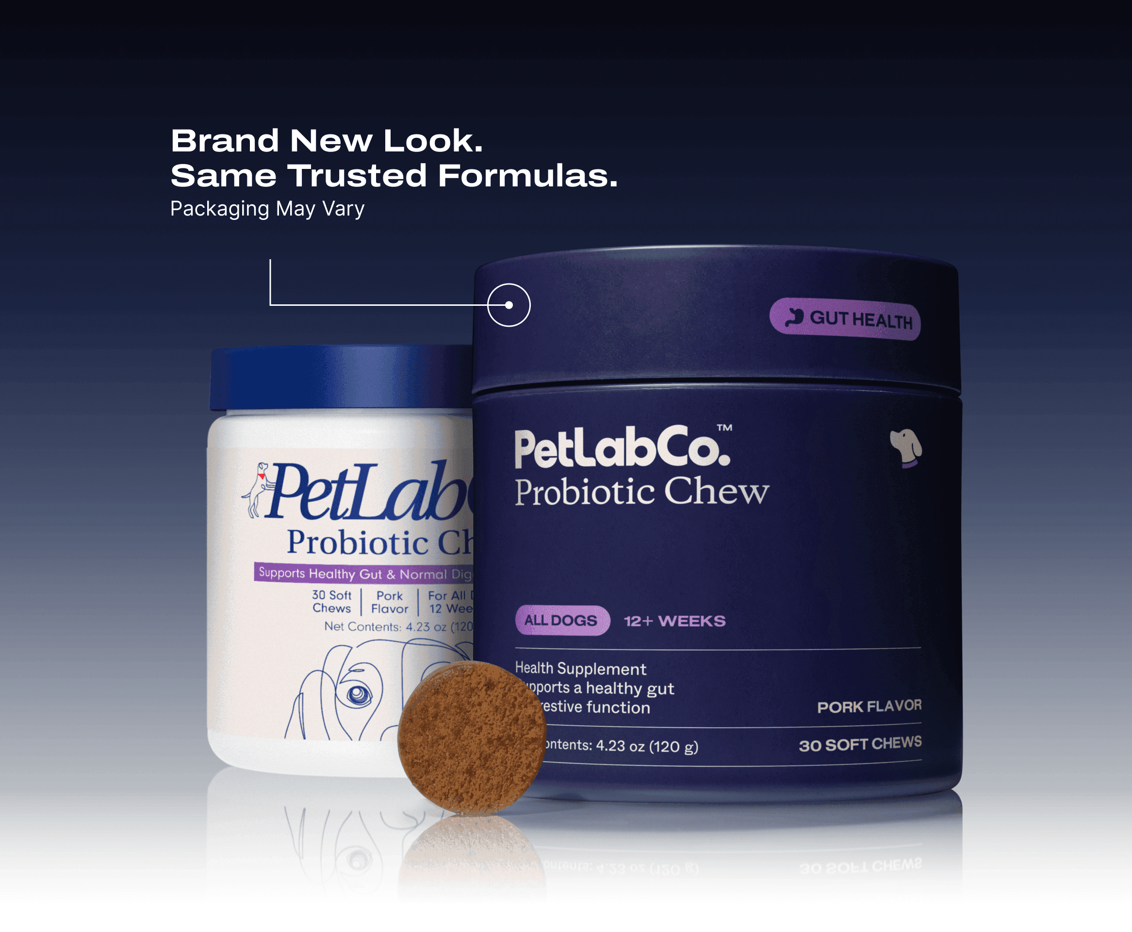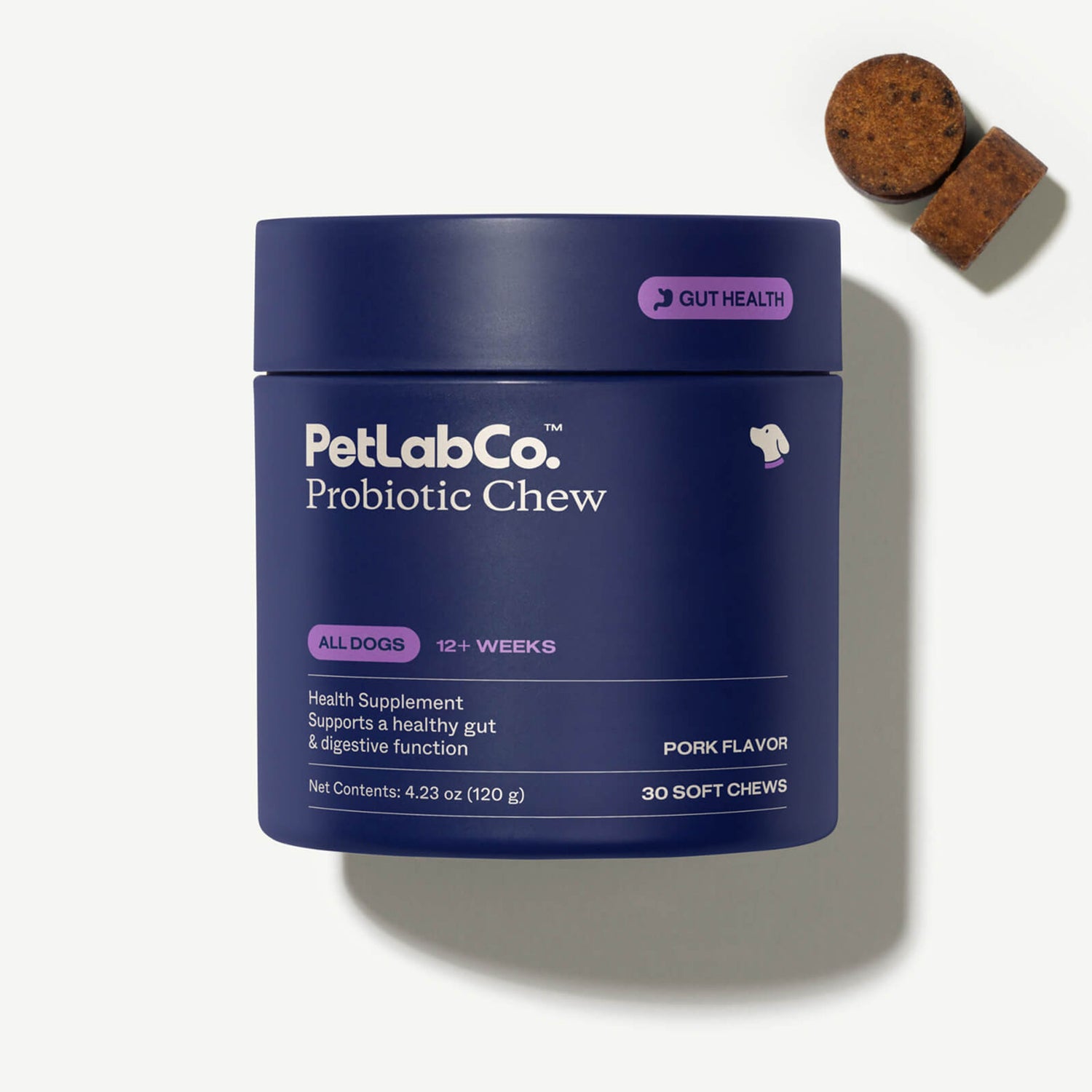 Our Probiotic Chews are also a breakthrough - they're the world's first clinically studied probioticsoft chews for dogs, shown to enhance beneficial gut bacteria and a healthy inflammatoryresponse in the gut.